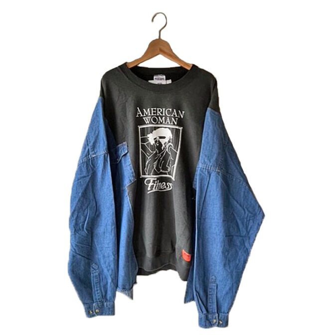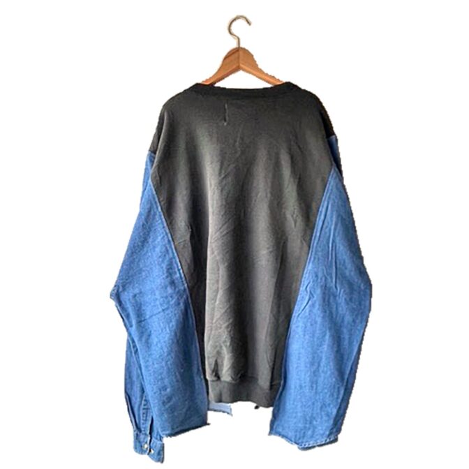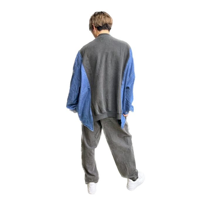リメイク カレッジスウェット x デニムシャツ ワイドプルオーバー(男女兼用)R-1874D ⑦ エコ サステナビリティ ヴィンテージ 再構築 一点物