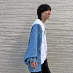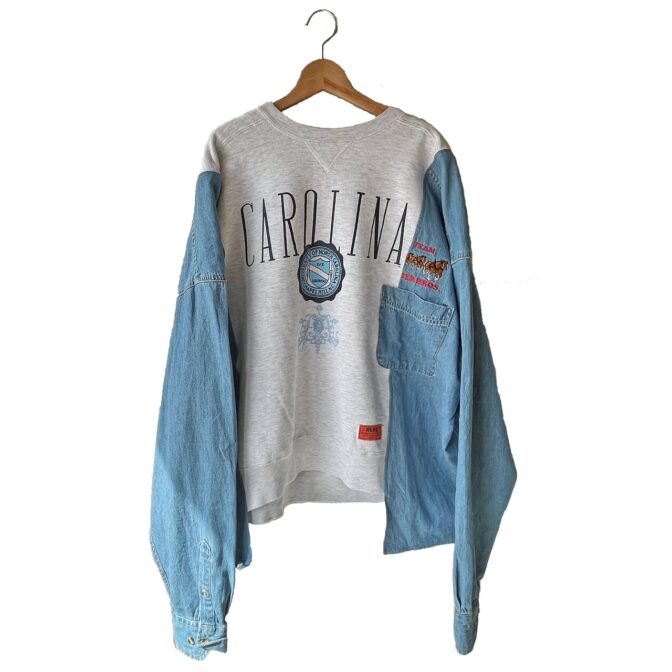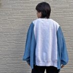 リメイク カレッジスウェット x デニムシャツ ワイドプルオーバー(男女兼用)R-1874C ⑦ エコ サステナビリティ ヴィンテージ 再構築 一点物
